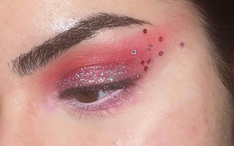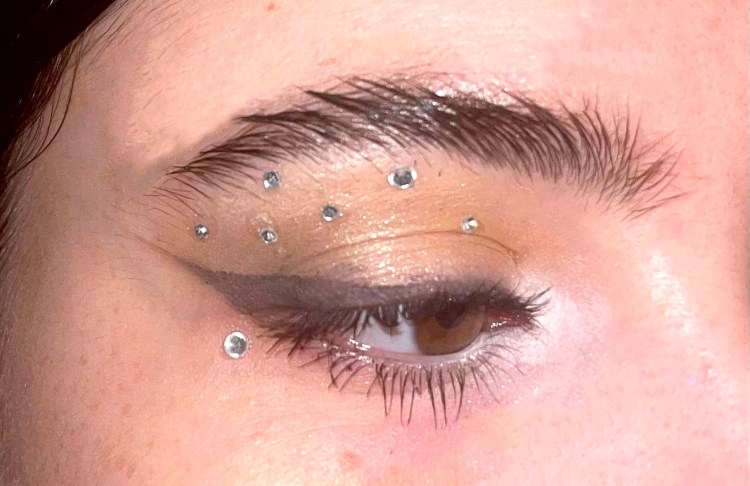 Etape 9 : Grâce à la colle à faux cils duo, coller des strass de différentes tailles sur la paupière