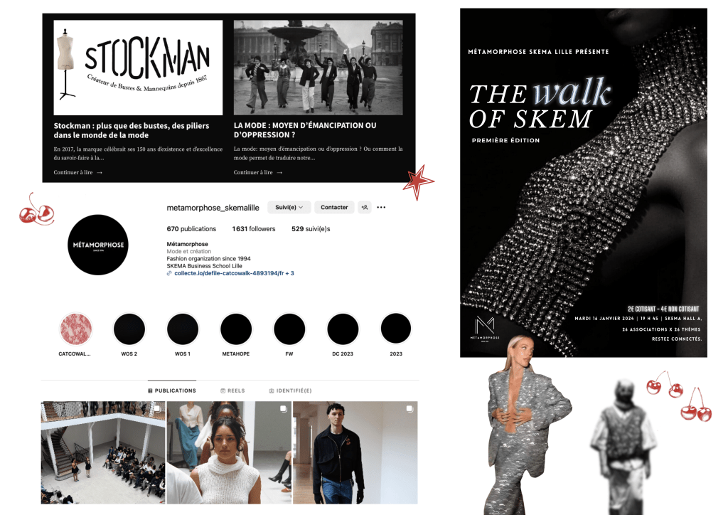 Au quotidien, ce pôle réalise, entre autres, des articles en lien avec le monde de la mode, des photos, des vidéos… et nous les postons sur nos différents réseaux sociaux (Instagram, Facebook et LinkedIn) ainsi que sur notre site internet.